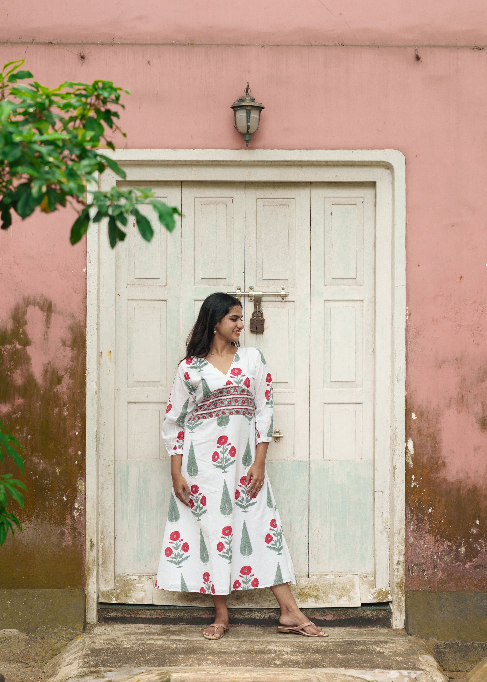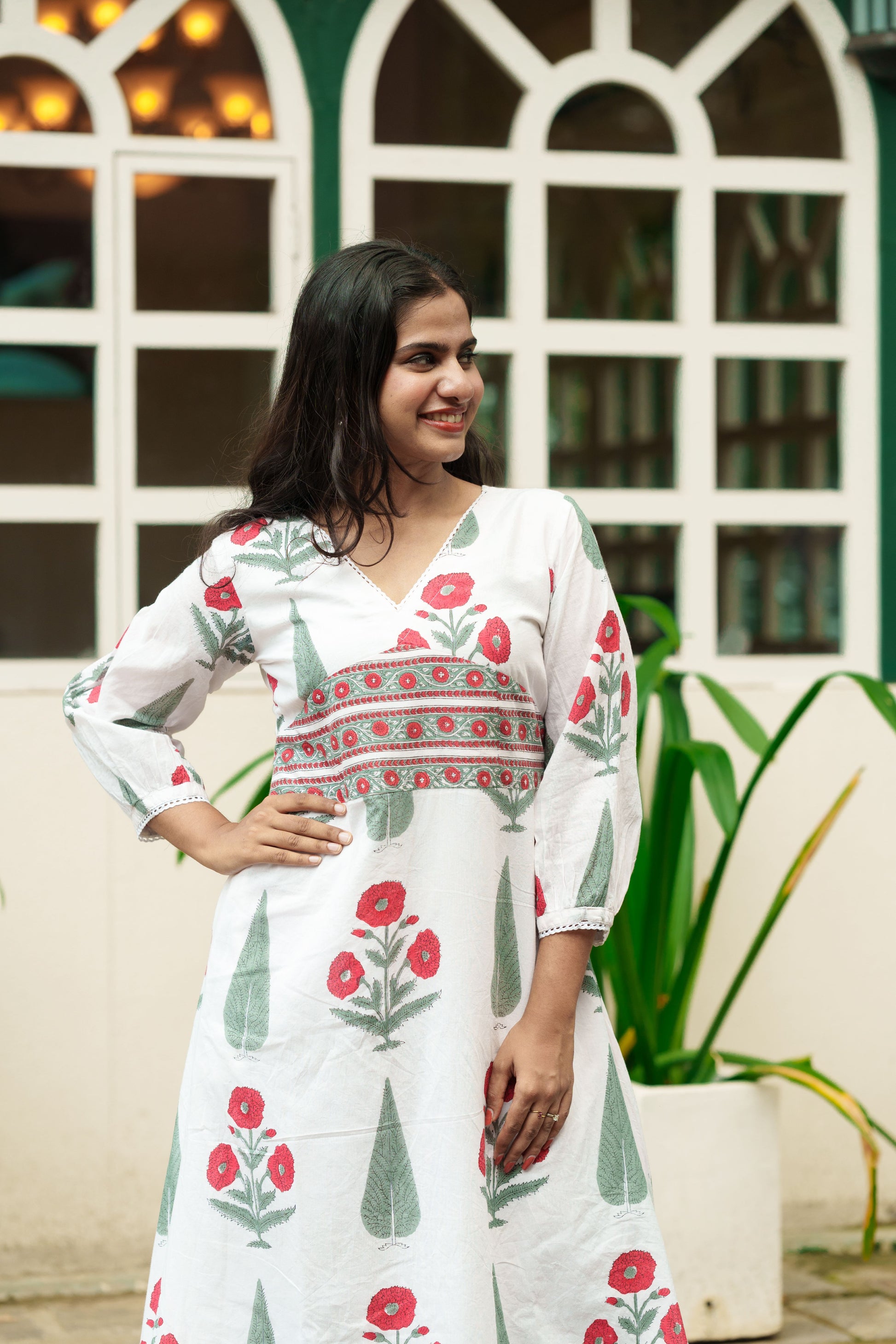"Pari" - Mul cotton white Mughal printed frock